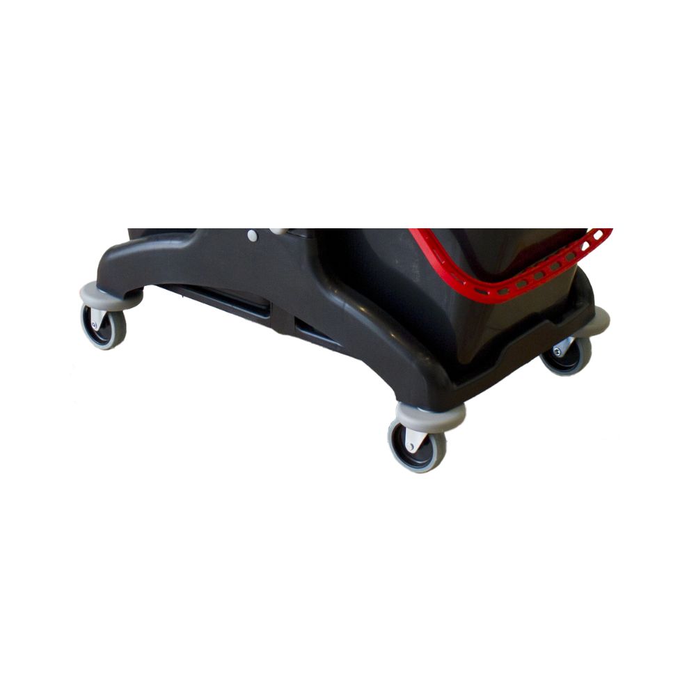 Ausgestattet mit vier Rädern (Ø 80 mm) mit Stoßdämpfern, lässt sich der IPC Reinigungswagen Bis besonders leicht manövrieren. Unebenheiten im Boden werden ausgeglichen, was den Wagen auch auf empfindlichen Belägen angenehm leise und sicher macht.