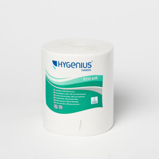 Handtuchrollen Hygenius Hands Eco 600 861061, 100% Recycling , Lagen: 2-lagig , Farbe: hochweiß mit Prägung, Qualtität: 100% Recycling, Rollenlänge: 150m, VE 6 Rollen